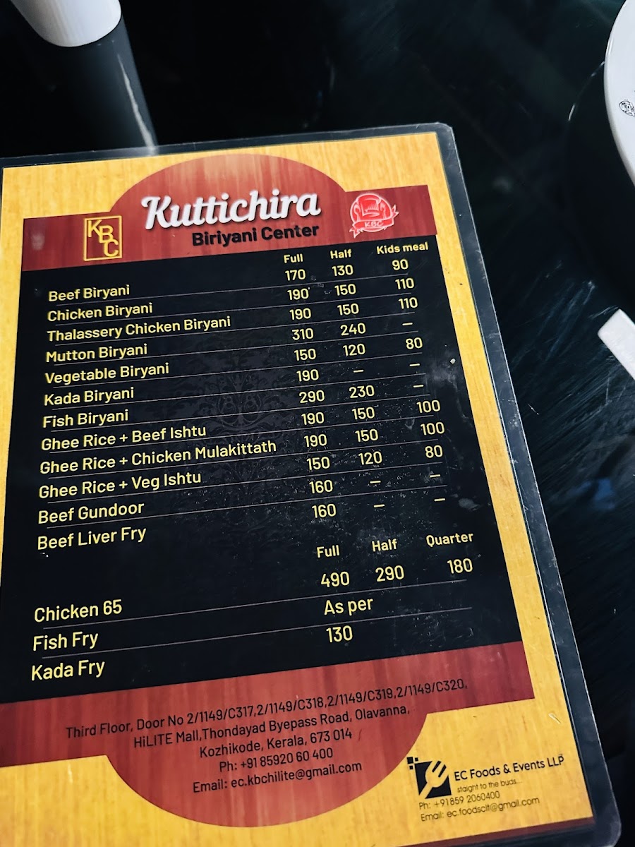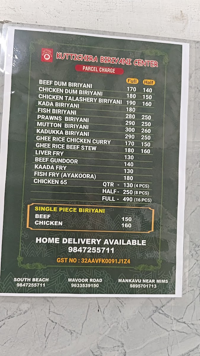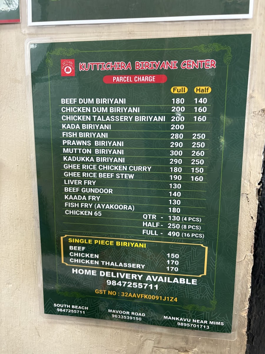 Welcome to Kuttichira Biriyani Center (KBC) - Beach, a must-visit culinary gem nestled on Gujarati St, Kozhikode. If you're a biryani aficionado, prepare for an unforgettable gastronomic experience that captivates the senses. Their standout offerings, like the Thalasseri Chicken Biriyani and Kada Biriyani, promise a vibrant explosion of flavors that will transport you straight to flavor paradise.